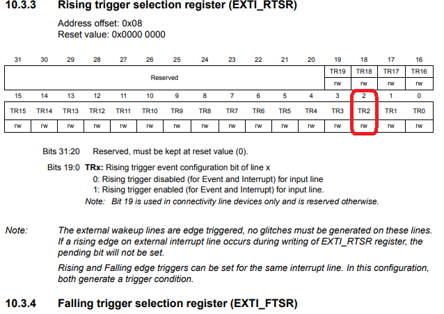 После этого можно перейти к переходу к нужной ячейке памяти в AT24C64. Для этого нужно передать сначала старшую часть адреса ячейки памяти а потом младшую. Передаются части адресов ячеек также т.е. записью их в регистр данных I2C2->DR. После того как произведен запуск отправки старшей части адреса ячейки памяти, нужно дождаться окончания отправки и передать младшую часть. Часть адреса ячейки памяти, в отличии от адреса слейва, является данными, как и те данные которые хранятся, записываются и читаются в эти ячейки. Поэтому для проверки окончания записи части адреса есть флаг окончания передачи данных по I2C который является битом 2 регистра I2C2->SR1: